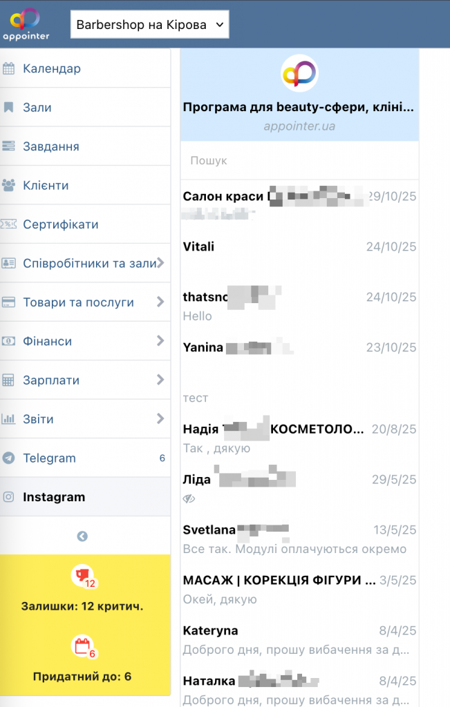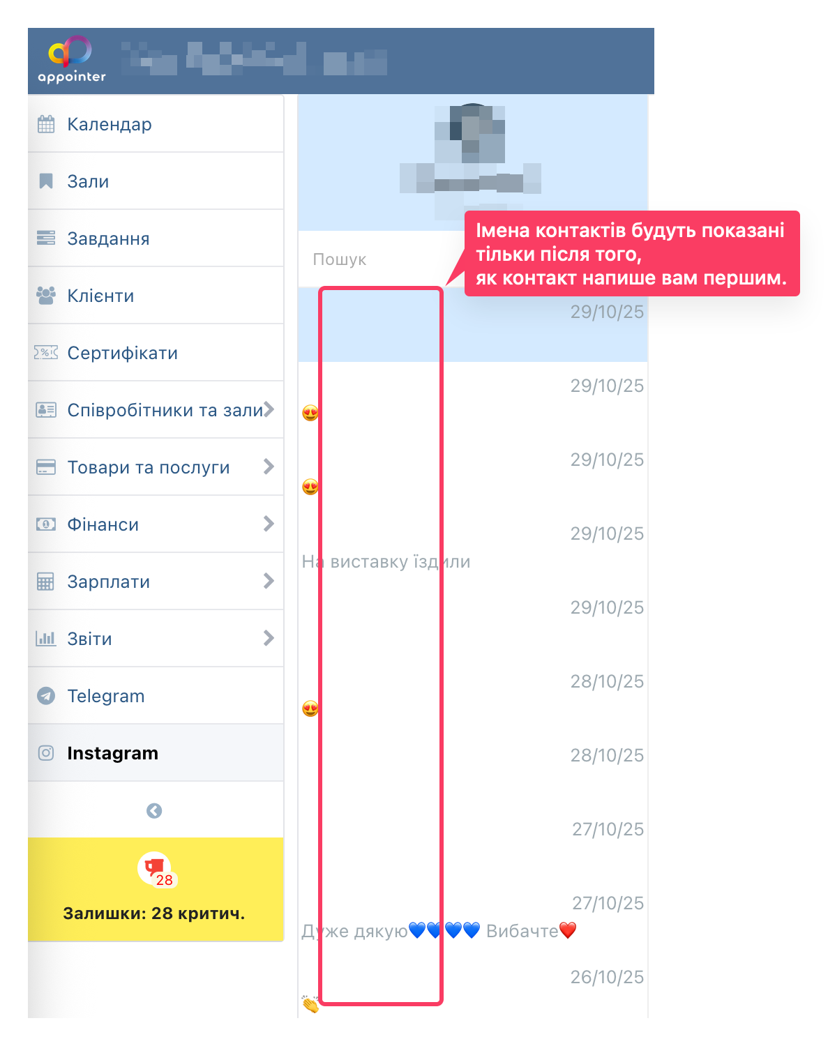 Ви можете перейти в меню «Instagram» і продовжити листування з вашими клієнтами.