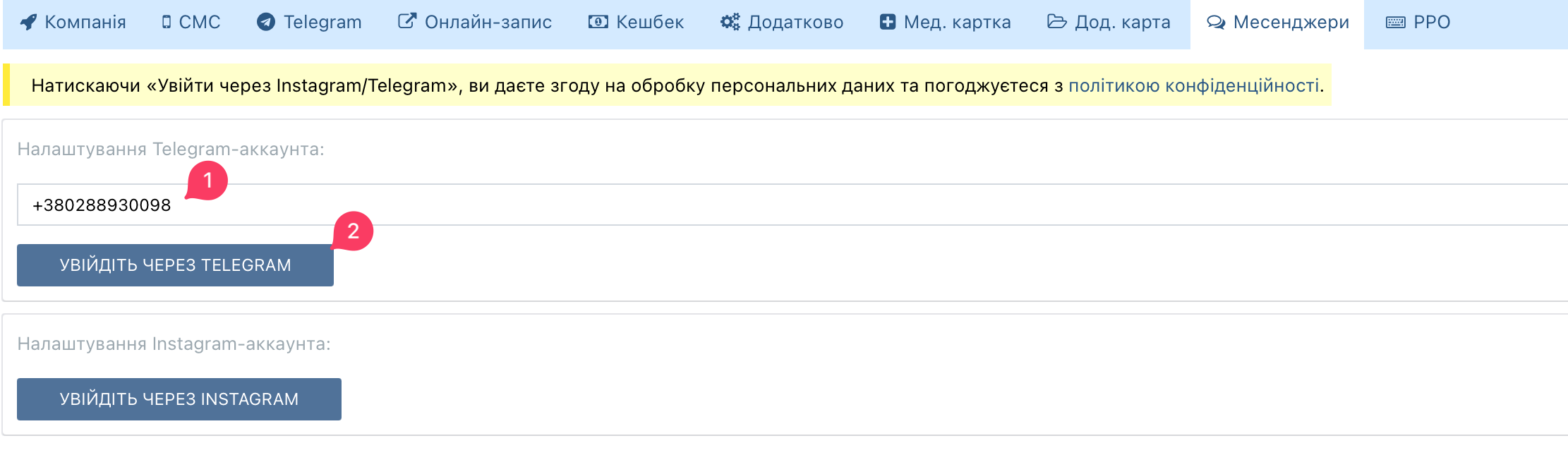 Модуль «Месенджери» є додатковим до основного функціоналу і оплачується окремо. Для підключення даного модуля, зверніться до нашого менеджера.
