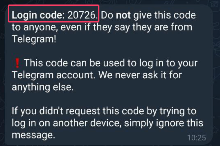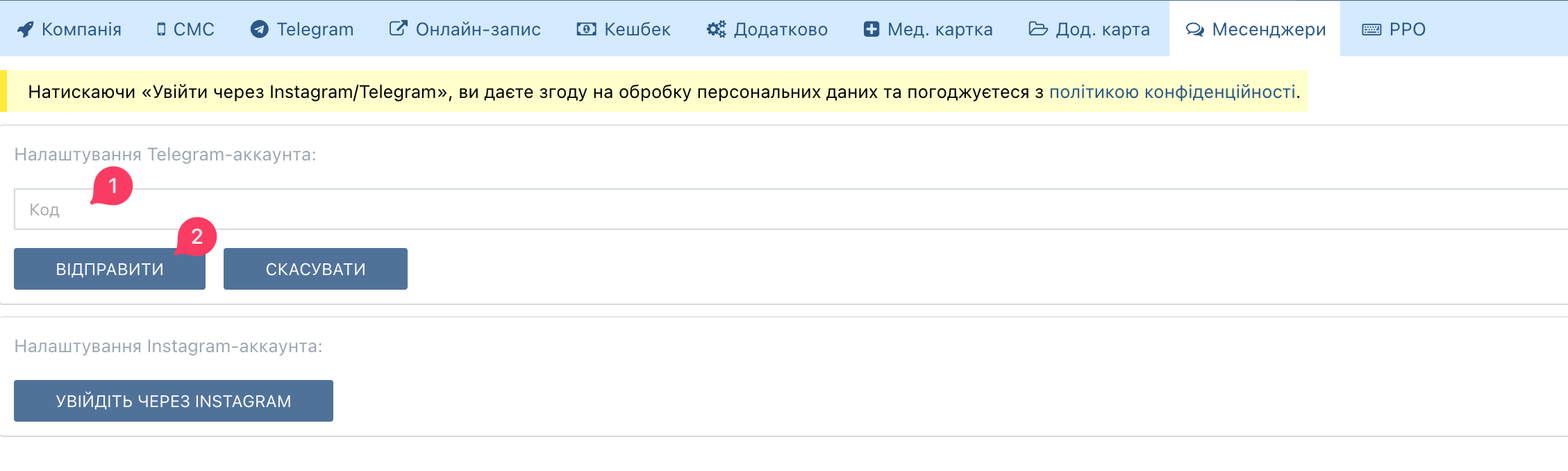 3. Отримайте код у ваш телеграм-аккаунт і вкажіть його в полі «Код»
